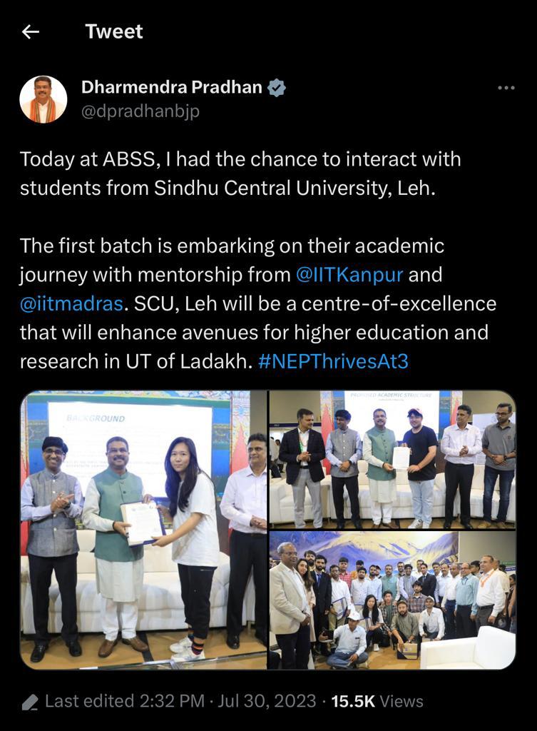 Inaugural Batch of Sindhu Central University Students (IIT Madras & IIT Kanpur) at the International Convention Centre, Pragati Maidan, New Delhi